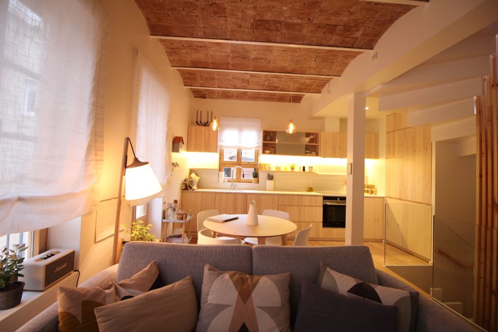En pleno corazón de Sarrià, SF32 encarna la fusión entre tradición y actualidad: se conservan las vigas de madera y un forjado de viguetas con casetones cerámicos, mientras la envolvente se actualiza con aislamiento de lana de roca, ventanas madera con doble acristalamiento, alcanzando casi cero demanda energética.
