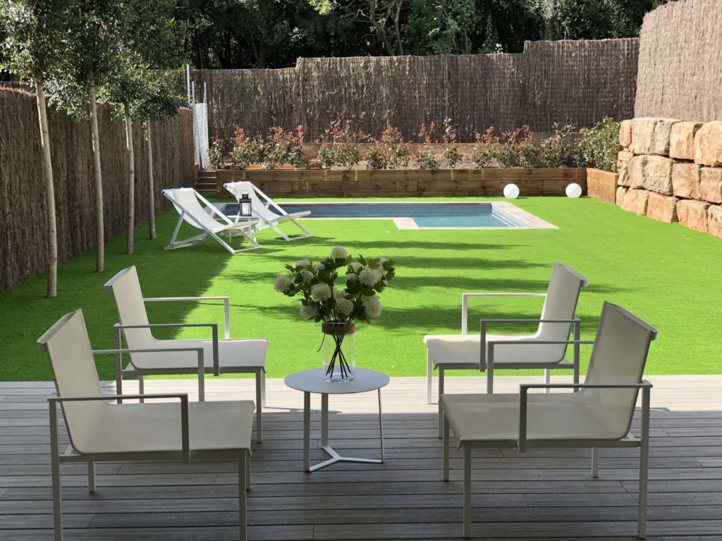 Una escalera metálica ligera conecta los dos niveles, separando zona de día en planta baja y noche en planta primera. El mobiliario a medida aprovecha cada rincón y los pavimentos continuos de microcemento refuerzan la amplitud y la continuidad visual con porches y plataformas exteriores. Miradores enmarcan copas de árboles; un porche profundo regula el sol y preserva la intimidad.