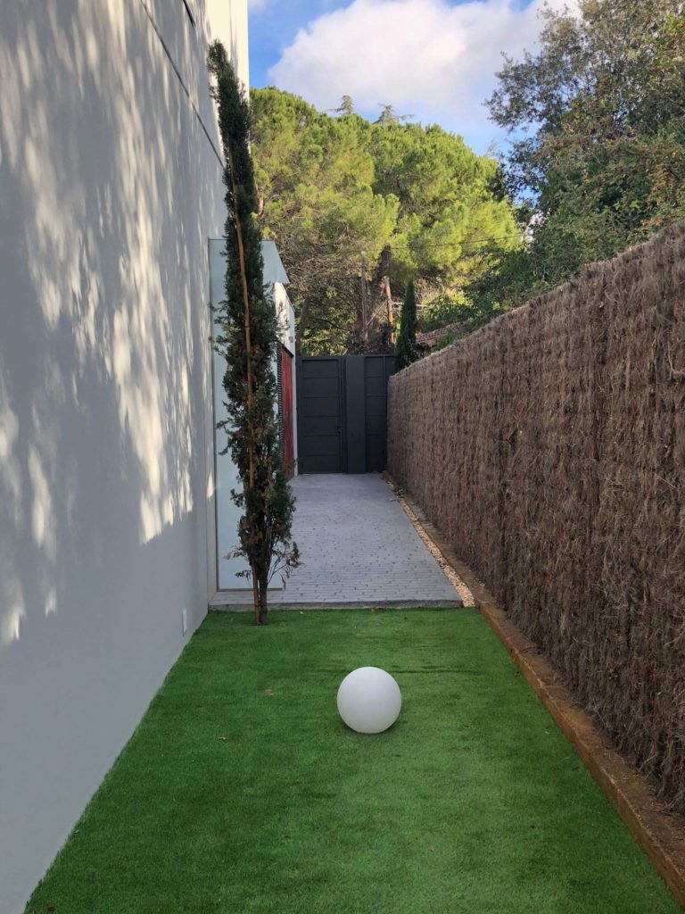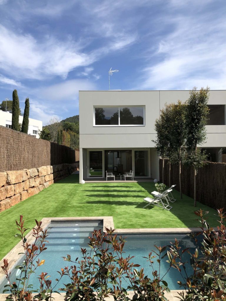 Casa de hormigón prefabricado de dos plantas, inmersa en un entorno natural de vegetación autóctona y relieve suave. Los paneles de hormigón, de geometría dúctil y líneas limpias, dibujan una estética minimalista que se aligera con grandes aberturas orientadas hacia la terraza, la piscina y el paisaje. Estas rendijas de suelo a techo disuelven el límite interior-exterior y prolongan el estar-comedor-cocina hasta el jardín; la ventilación cruzada recorre la planta, mientras luz y reflejos de agua vertebran la vida cotidiana.