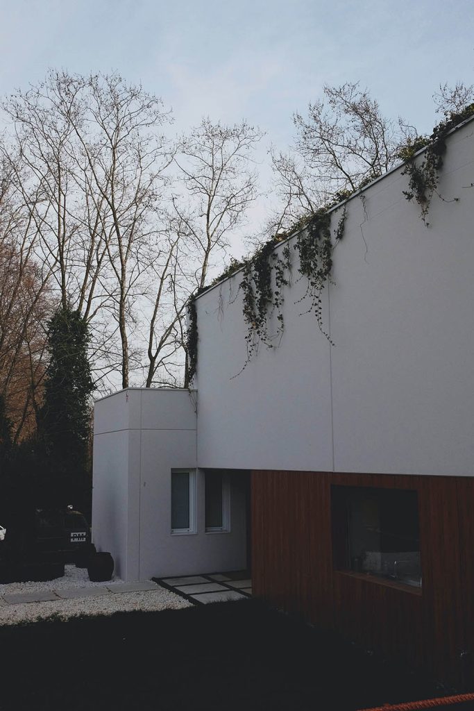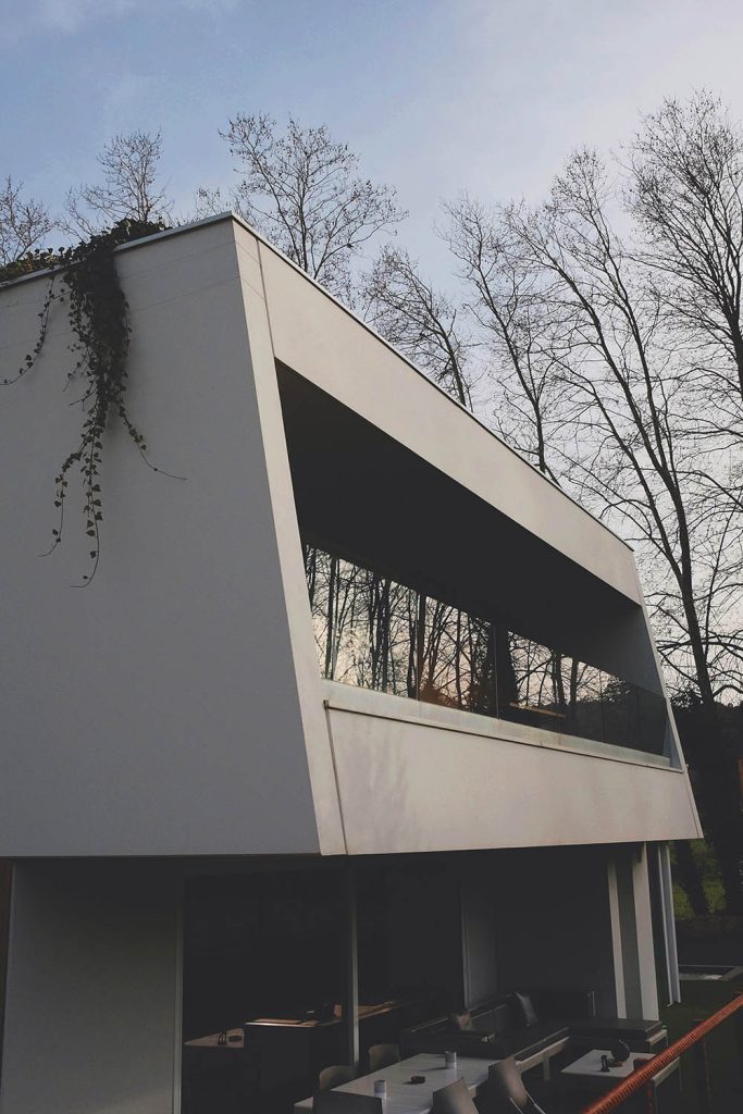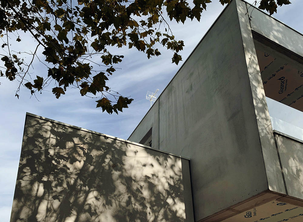 Entre la vegetación natural, SE109 se erige como una casa de hormigón prefabricado que dialoga con su entorno. Los volúmenes se fracturan en diagonales que aportan dinamismo a la fachada, mientras grandes ventanales de suelo a techo conectan los espacios diáfanos de estar-comedor-cocina con la terraza y la piscina, permitiendo que la luz y el verde invadan el interior.